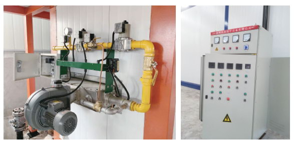 为保证整条生产线低耗高效节能,加热系统选用日本正英宽口燃烧机加热系统。烘干、固化烘道全部加热功率为 70 万大卡。